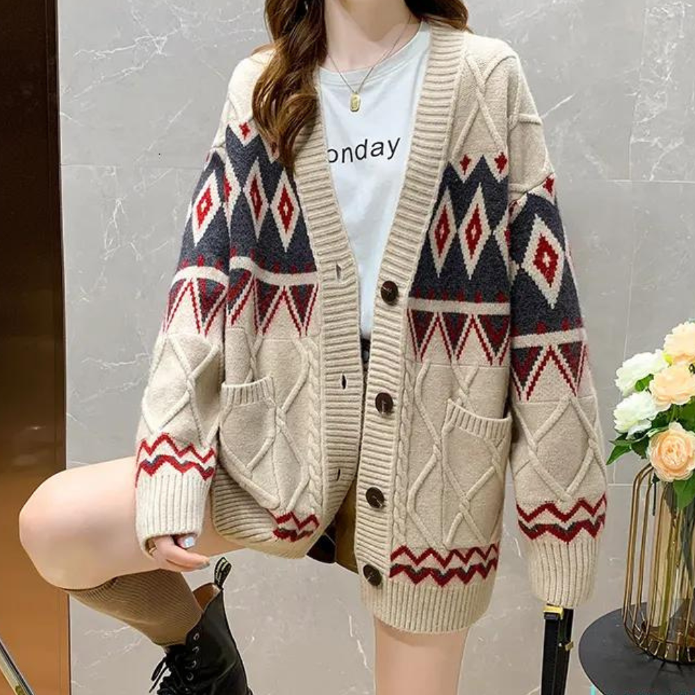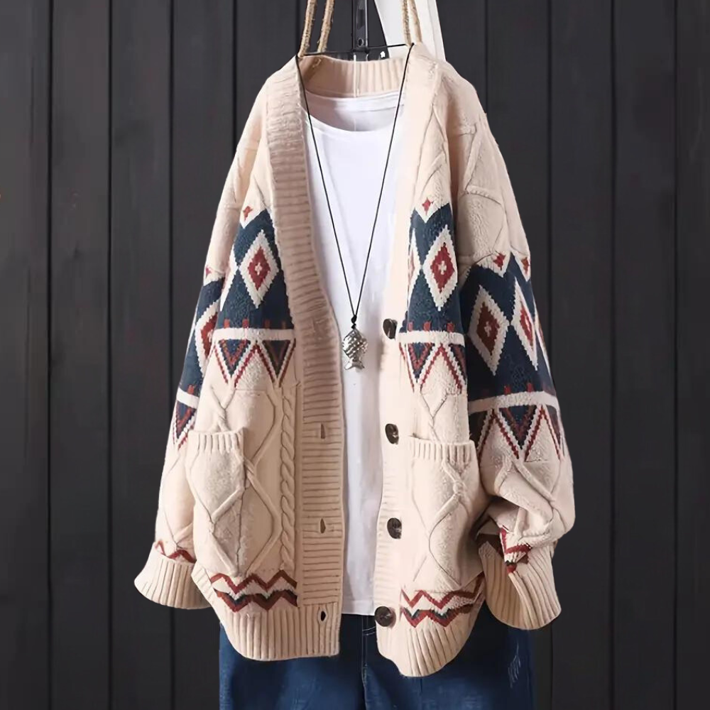Cardigan Oversize Donna | Motivo Etnico | Maglia Calda e Morbida