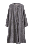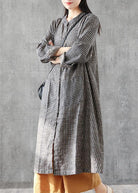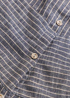 Questo chemisier a righe verticali in lino è il capo ideale per un look sobrio ma ricercato.