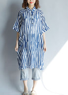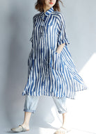 Questo chemisier oversize a righe irregolari blu e bianche è perfetto per uno stile rilassato e creativo.