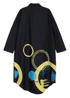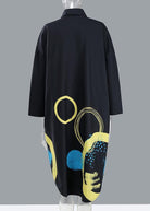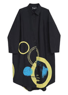Questo chemisier oversize con stampa astratta unisce l'eleganza di una camicia lunga alla creatività di un design moderno.
