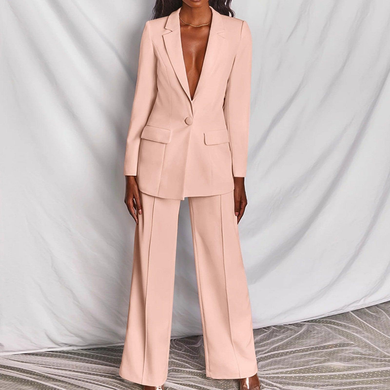 Completo con Blazer Sartoriale e Pantaloni a Gamba Larga | Miscela di Poliestere | Elegante
