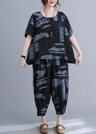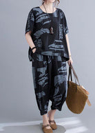 Questo completo due pezzi nero con stampa grafica ispirata alla città di New York è perfetto per chi ama esprimere la propria personalità con uno stile rilassato ma originale. Il taglio ampio e leggero garantisce libertà di movimento, mentre la stampa urbana aggiunge un tocco street-style al tuo outfit quotidiano.