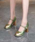 Queste scarpe verdi con dettagli dorati e cinturino alla caviglia aggiungono carattere e stile alle tue serate speciali.