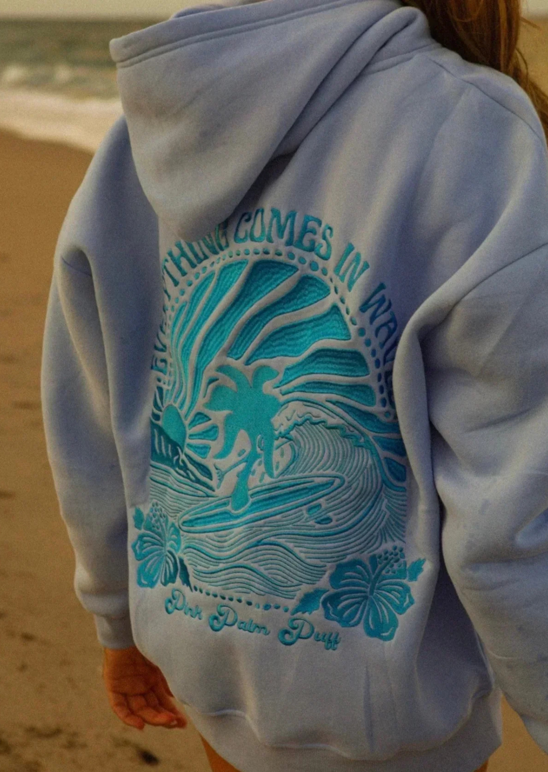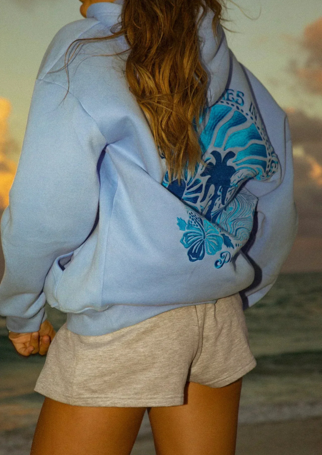 Questa felpa oversize con cappuccio e stampa ispirata all’oceano è ideale per un look rilassato e trendy.