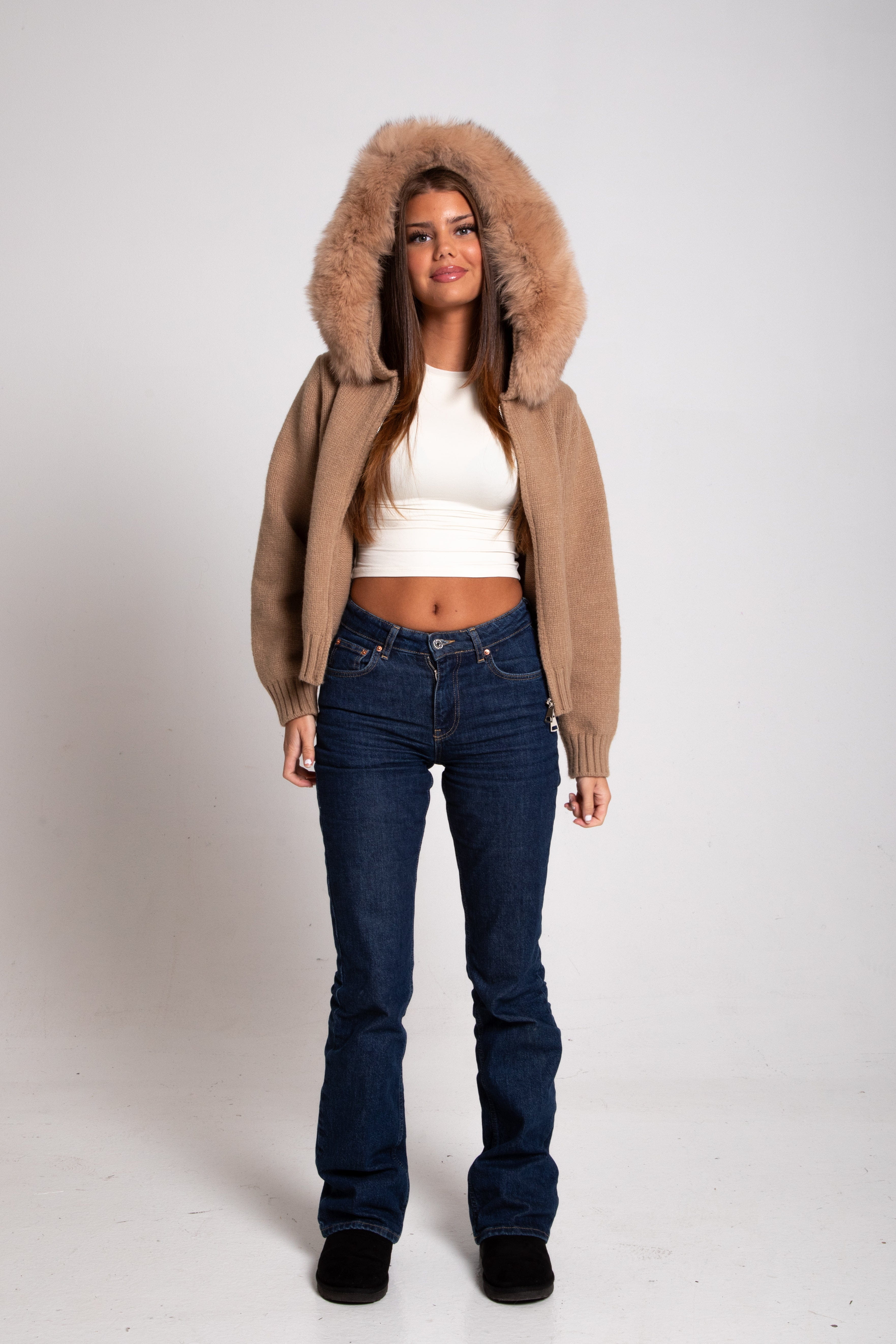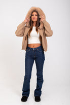 Questa giacca con cappuccio e dettagli in eco-pelliccia è la scelta ideale per chi desidera comfort e raffinatezza senza rinunciare alla praticità.