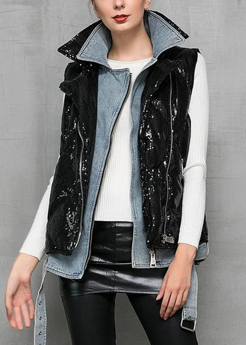 Questo gilet in denim e paillettes unisce grinta e stile, perfetto per chi ama distinguersi.