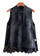 Questo gilet nero in jacquard con dettagli floreali tono su tono è perfetto per look sofisticati e ricercati.