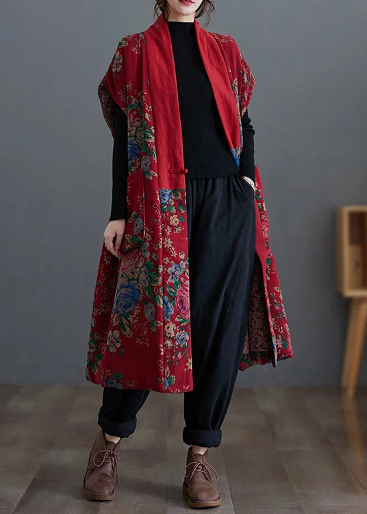 Questo gilet lungo imbottito con fantasia floreale è perfetto per aggiungere carattere e calore ai tuoi outfit quotidiani.
