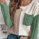 Questo maglione a blocchi di colore con maniche a contrasto è l’ideale per un look trendy e confortevole.