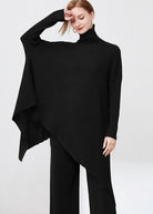 Questo maglione oversize nero con taglio asimmetrico è un mix perfetto tra eleganza minimalista e praticità.