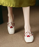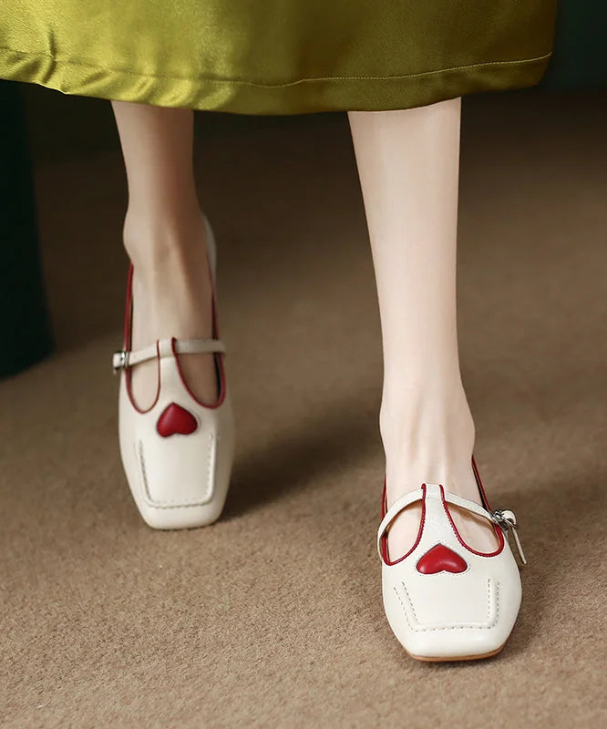 Queste Mary Jane dal design unico catturano l'attenzione con dettagli a cuore e finiture rosse a contrasto.