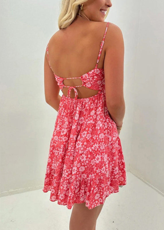 Questo mini abito a fiori con spalline sottili è l’ideale per un look spensierato e femminile.