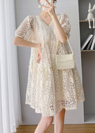 Questo mini abito in pizzo floreale trasparente è delicato, arioso e pieno di fascino.