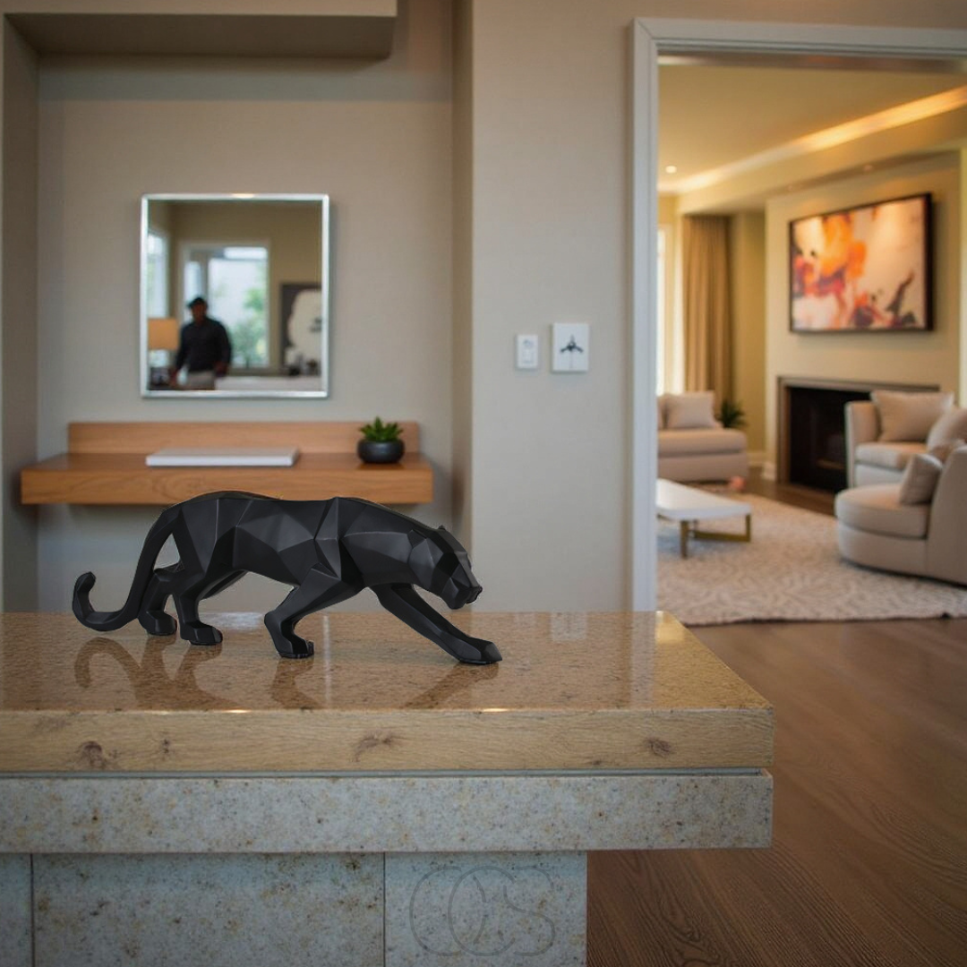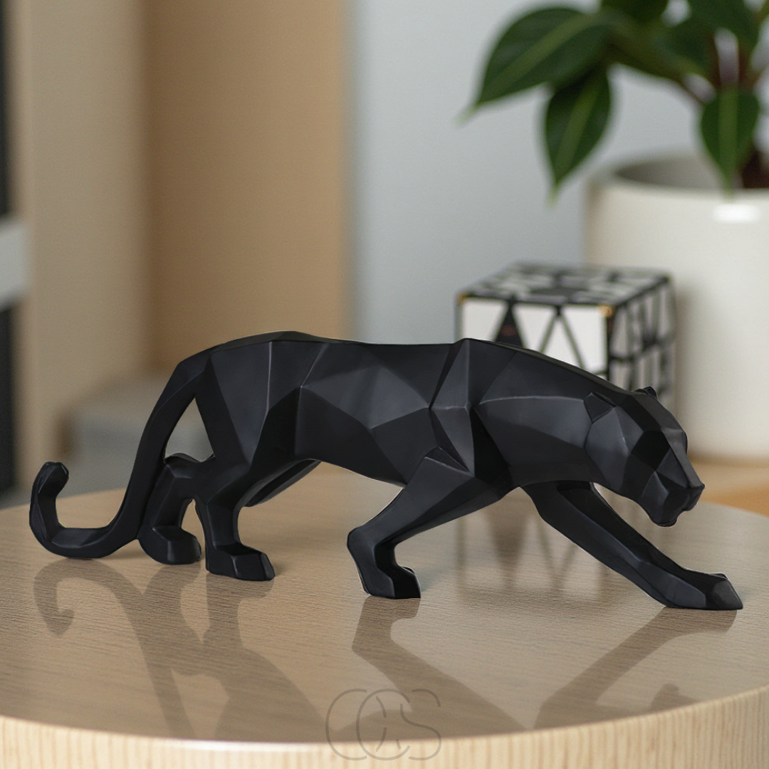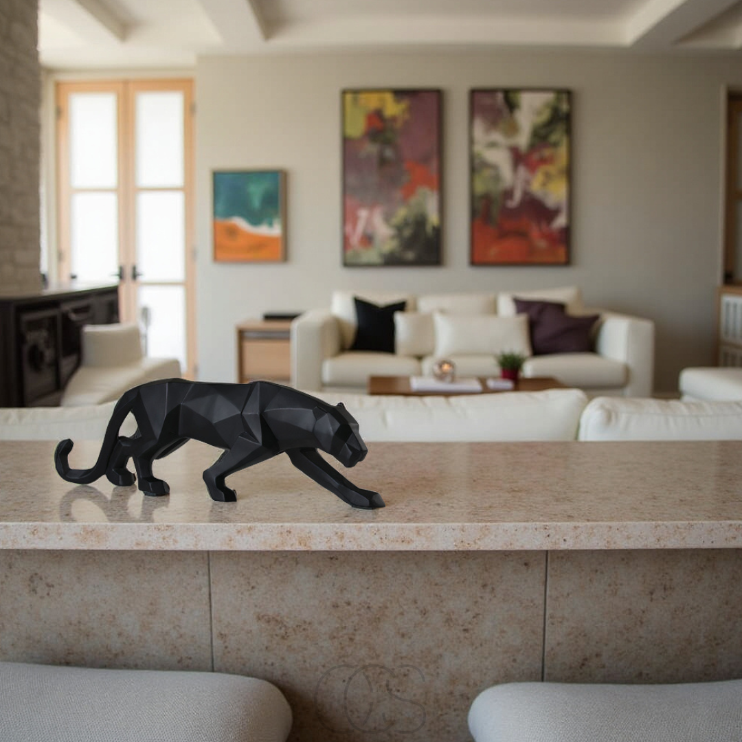 Questa scultura geometrica di pantera nera è l'accessorio perfetto per aggiungere eleganza e carattere a qualsiasi ambiente.