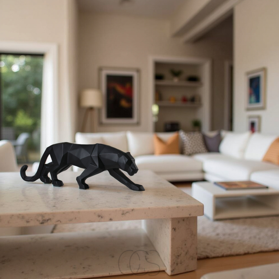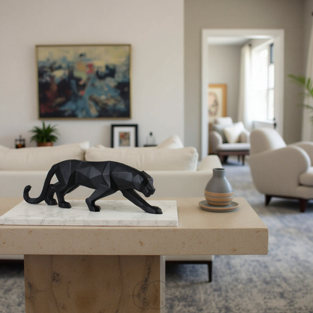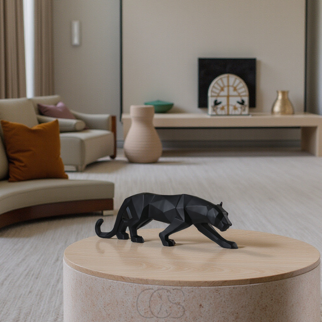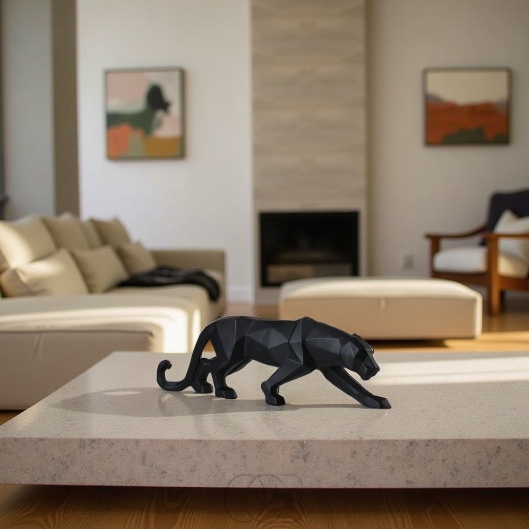 Questa scultura geometrica di pantera nera è l'accessorio perfetto per aggiungere eleganza e carattere a qualsiasi ambiente.