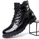 Questi stivaletti con effetto coccodrillo uniscono un design grintoso a una struttura robusta perfetta per l'inverno.