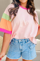 Questa maglietta oversize a blocchi di colore è perfetta per il tempo libero, le vacanze o le giornate casual in città.