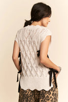 Questo top crochet senza maniche è un capo femminile e versatile, perfetto da abbinare a jeans o gonne. Il motivo traforato crea un effetto delicato, ideale per outfit casual o più ricercati.