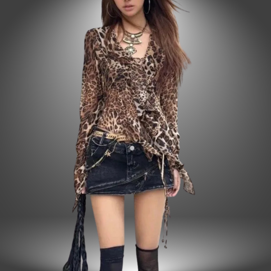 Questo top con stampa leopardata dona un tocco selvaggio e glamour al tuo outfit.