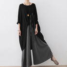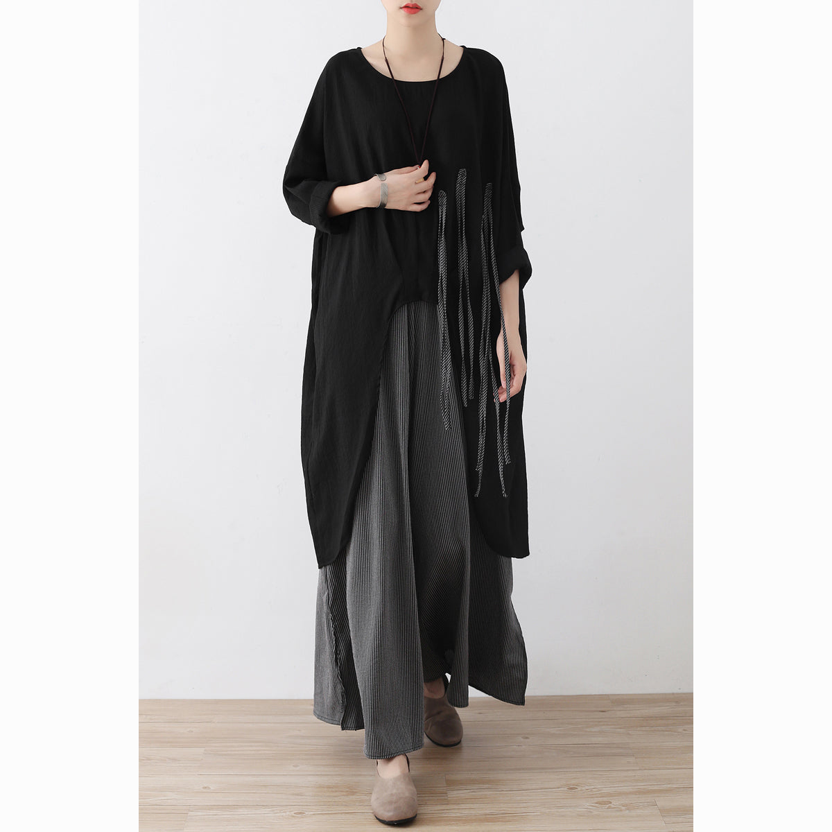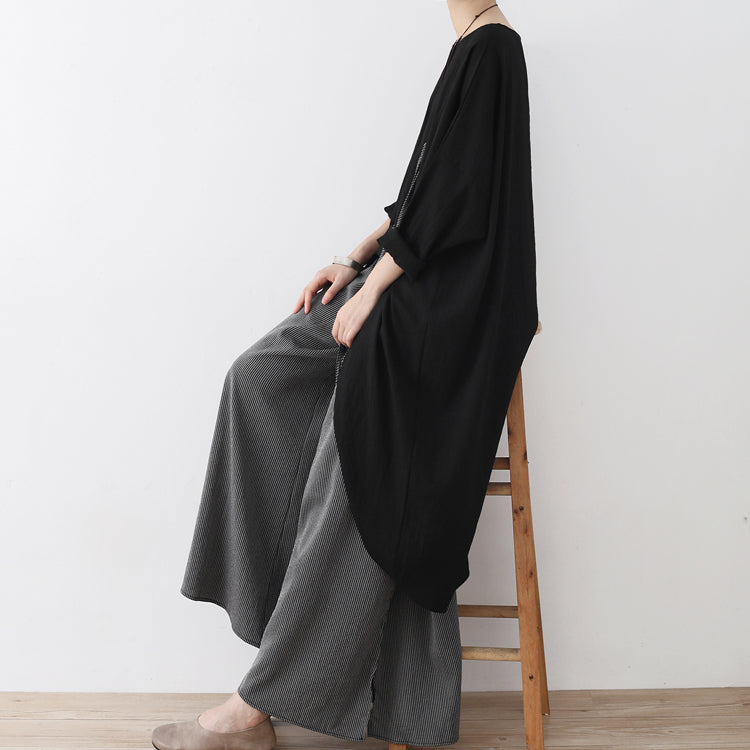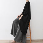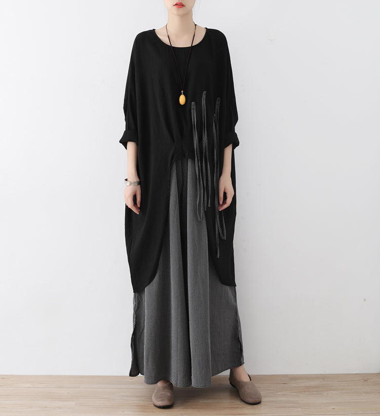 Questa tunica nera è l’equilibrio perfetto tra minimalismo e originalità, ideale per look creativi e rilassati.