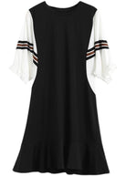 Questo vestito corto con maniche contrastanti unisce comodità e stile in un design sportivo ma femminile.